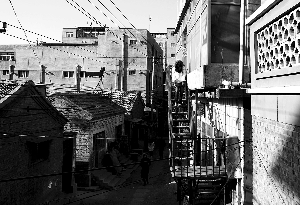 因外來人口增加,唐家?guī)X村民加蓋房子供出租。狹窄樓梯建在樓外,僅能容一人通過。本報資料圖片 韓萌 攝