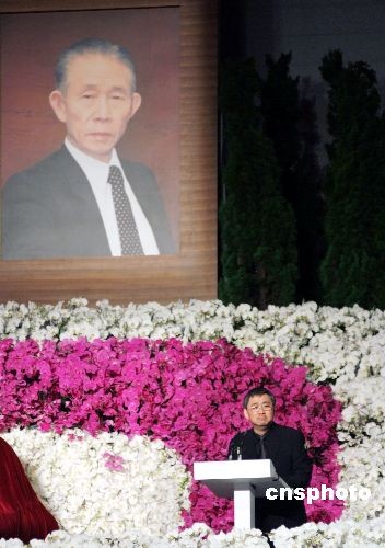 2008年11月8日,臺灣經營之神、臺塑關系企業創辦人王永慶告別儀式在臺北縣林口的長庚大學活動中心舉行,圖為王永慶長子王文洋在告別式最后,代表全體家屬致答謝詞。 中新社發 臺塑 攝