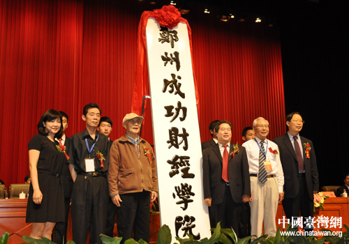 中國臺灣網5月18日鄭州消息 日前,鄭州成功財經學院揭牌慶典在黃河迎賓館會議中心隆重舉行。河南省政府副秘書長介新、省教育廳副廳長劉湘平、省臺辦副主任尚潤澤等省市相關單位領導,河南財經政法大學、鄭州輕工業學院、鄭州升達經貿管理學院、臺灣苗栗育達商業科技大學、臺灣桃園育達高中、臺北育達高職等30所友好高校負責人以及學院師生代表500余人參加慶典。