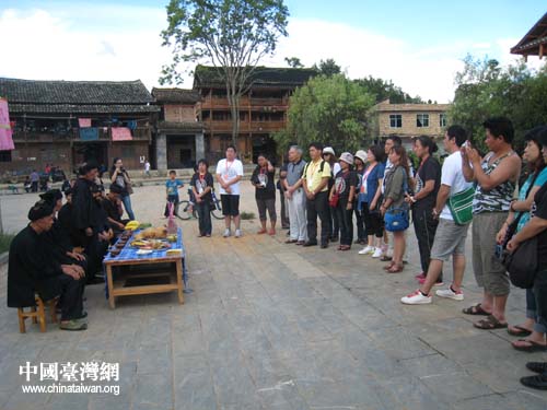 中國臺灣網8月3日水各消息 日前,臺灣少數民族教師參訪團在三都水族自治縣水各村參加水族同胞祭祖儀式。