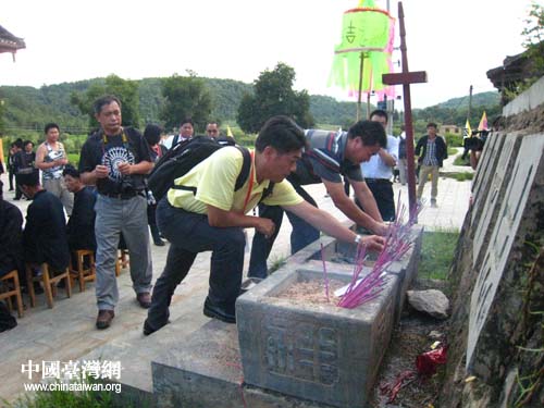 根志優先生在給水族祖先上香。(黔南州臺辦 桂勇 攝)