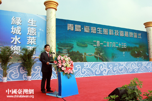 中國臺灣網9月25日萊西消息 日前,青島臺灣生態科技園揭牌儀式在萊西市人民廣場隆重舉行。時任臺灣;鶗麻L江丙坤,海峽兩岸關系協會副秘書長張勝林,山東省臺辦主任張雪燕,青島市副市長劉明君,青島市委副秘書長、市臺辦主任田云南,萊西市委書記、市人大常委會主任劉圣珍,萊西市委副書記、市長孫利國,共同為青島臺灣生態科技園揭牌。