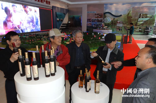 臺商參觀火龍果系列產品。(黔南州臺辦 吳建國 攝)