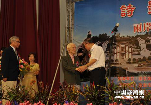 5月30日,李鴻忠在彰化市彰泰中學會見著名詩人余光中和鄭愁予先生。(圖片來源:湖北省臺辦)