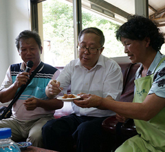 5月30日,李鴻忠在彰化市彰泰中學出席《詩歌的太陽》詩會,會見彰化市長邱建富先生,互贈禮品。(圖片來源:湖北省臺辦)