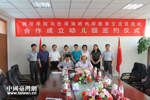 中國臺(tái)灣網(wǎng)8月27日濰坊消息 8月27日,濰坊學(xué)院與臺(tái)灣海峽兩岸教育交流促進(jìn)會(huì)就合作成立幼兒園正式簽約。臺(tái)灣海峽兩岸教育交流促進(jìn)會(huì)將在濰坊學(xué)院濰坊幼教特教師范學(xué)校校區(qū)投資建設(shè)幼兒園項(xiàng)目,該幼兒園將采用美國“芝麻街”教育模式和臺(tái)灣先進(jìn)的教育理念,配套以符合幼兒智商、情商、品德、體能、藝術(shù)素養(yǎng)全面發(fā)展的高端設(shè)施。(中國臺(tái)灣網(wǎng)、濰坊市臺(tái)辦聯(lián)合報(bào)道)