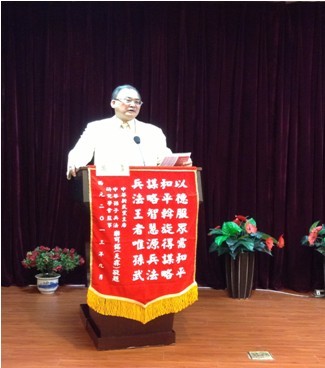 研習營上,精彩演講不斷。專程前來出席活動的臺灣新民黨黨主席、臺灣中華孫子兵法研究學會監事樂可銘先生作了“由《孫子兵法》全勝觀實現‘中國夢’”的精彩演講,并向大會贈送了“以德服眾需和平,和平斡旋得謀略,謀略智慧源兵法,兵法王者唯孫武”的錦旗。蘇州市臺資企業協會常務副會長楊肇鋒博士作了題為“運用孫子智慧贏得市場競爭”的即興演講,贏得陣陣掌聲。蘇州市孫子兵法國際研究中心副主任韓勝寶結合自己在臺灣歷時二個多月的采訪和研究成果,就“《孫子兵法》在臺灣的傳播”進行了專題演講。