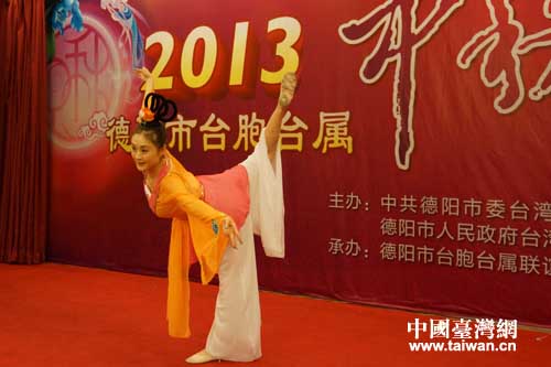 活動中,臺屬代表踴躍發言,暢談建市30周年來的巨大變化,德陽與臺灣交流交往的大好形勢,暢想兩岸關系和平發展的光明未來,紛紛表示要發揮自身優勢,在本職崗位上為我市發展建功立業,在向臺灣親人宣傳家鄉上不遺余力,在推介臺灣同胞來德陽上當好紐帶;市臺辦機關干部與臺聯理事會、臺屬代表共同演唱了《月之故鄉》。在《愛的神話》、《祖國你好》、《鴻雁》、《明月幾時有》、《穆桂英掛帥》、《牧馬人之歌》等節目表演中,臺屬們或獨唱、或舞蹈、或風琴獨奏、或京劇演唱,載歌載舞抒發對海峽彼岸親人的深情思念和對祖國統一的熱切企盼,歌唱繁榮富強的偉大祖國。
