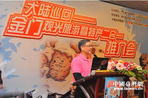 金門縣政府副縣長吳友欽在會上介紹了金門旅游資源及當(dāng)?shù)靥禺a(chǎn)業(yè)情況。吳友欽表示,金門保存了良好的閩南文化、得天獨厚的自然生態(tài)風(fēng)光等。當(dāng)?shù)赜忻奶禺a(chǎn)金門高粱酒在臺灣市場占有率約八成;貢糖、牛肉干等特產(chǎn)以及金門離島免稅政策對眾多大陸游客都具有很強的吸引力,金門旅游越來越受到大陸游客的青睞,歡迎大家到金門觀光體驗。