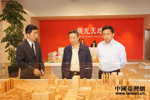 周敏謙主任(中)在新光天地調(diào)研項(xiàng)目建設(shè)情況。(圖片來源:四川省臺(tái)辦)