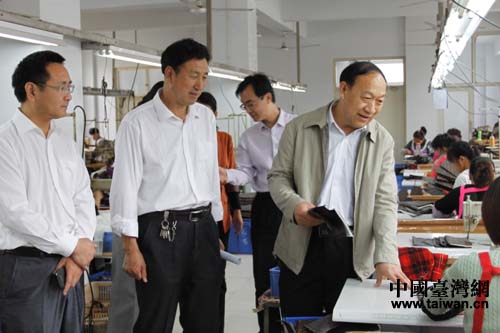 史東林參觀湯陰金鐘皮具廠生產車間。(圖片來源:安陽市臺辦)