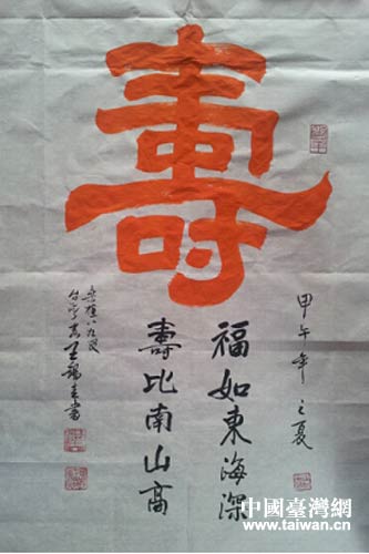 中國臺灣網7月7日張家界消息 日前,應湖南張家界市臺辦的邀請,近90歲高齡的臺灣桑植籍著名書法家王錫圭來到家鄉揮毫潑墨,為鄉親們留下一幅幅珍貴作品。