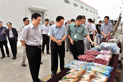調(diào)研組一行在隆昌旺旺食品有限公司調(diào)研(圖片來(lái)源:內(nèi)江日?qǐng)?bào)記者張雷)