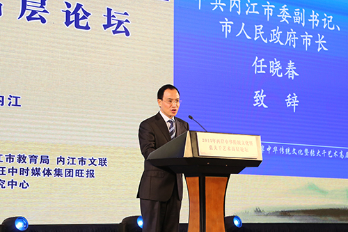 中國臺灣網12月28日內江訊 2015年12月24日至26日, 2015年兩岸中華傳統文化暨張大千藝術高層論壇在四川內江舉辦。四川省政府副秘書長陳越良宣布開幕,四川省臺辦主任周敏謙、內江市市長任曉春和中國國民黨中央評議委員會主席團主席張榮恭等出席開幕式并致辭,內江市委副書記周勇主持開幕式。蘇叔陽、魏明倫、黃光男、鄭愁予等來自海峽兩岸的文人名人、專家學者、臺商代表、青年學生等近200人參加。