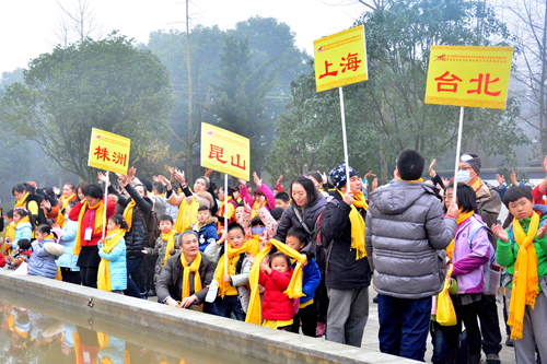 來自兩岸9個城市(上海市、昆山市、臺北市、珠海市、深圳市、長沙市、株洲市、益陽市、成都市)的親子家庭和志愿者約200人開展了為期4天的文化交流,表演了經典話劇、快板、情景劇、手語舞《禮運大同》等,誦讀了《論語》、《老子》,河洛漢音誦讀《千字文》等。志愿者還在現場發放新年愿望卡片,讓孩子們寫下自己的新年愿望!拔乙0职謰寢屔眢w健康”,“我要學習進步”,“我要祝世界和平”,大家紛紛將自己美好愿望和新年祝福寫下來,祝福每個家庭幸福和諧。