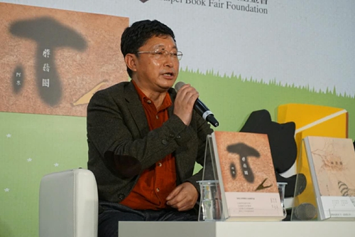 四川省作家協(xié)會(huì)主席、知名藏族作家阿來在臺(tái)北新書發(fā)布會(huì)上致辭。