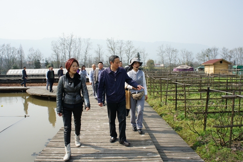 四川省臺辦主任周敏謙考察岷江現(xiàn)代農(nóng)業(yè)示范園。