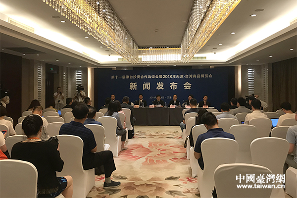 第十一屆津臺投資合作洽談會暨2018年天津·臺灣商品博覽會新聞發布會4日下午在天津舉行。(中國臺灣網 趙苗青攝)
