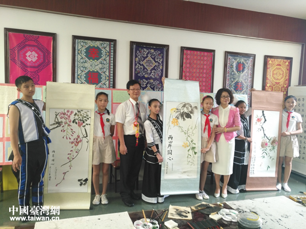 金花兩地學生共繪國畫展示。(圖片來源:廣西河池市金城江區臺辦)