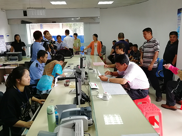 9月1日上午,漳平市永福鎮派出所辦證大廳內聚集了很多等待申領臺灣居民居住證的臺商臺農。(漳平臺創園供圖)