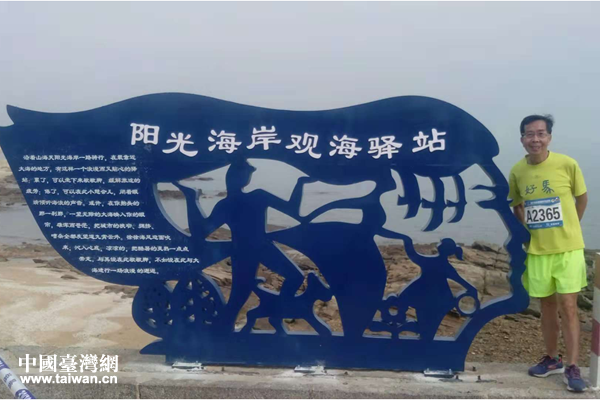 臺灣選手與沿途景觀合影。(圖片來事:日照市臺辦)