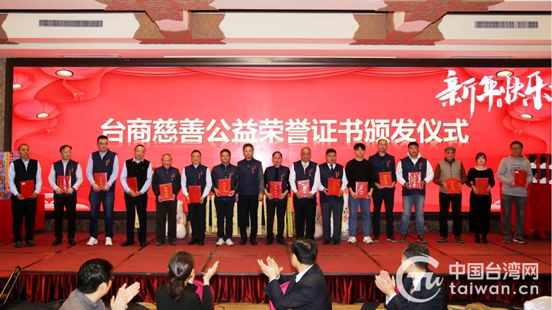 頒發(fā)“臺(tái)商慈善公益榮譽(yù)證書”(圖片來(lái)源:濟(jì)南市臺(tái)港澳辦)