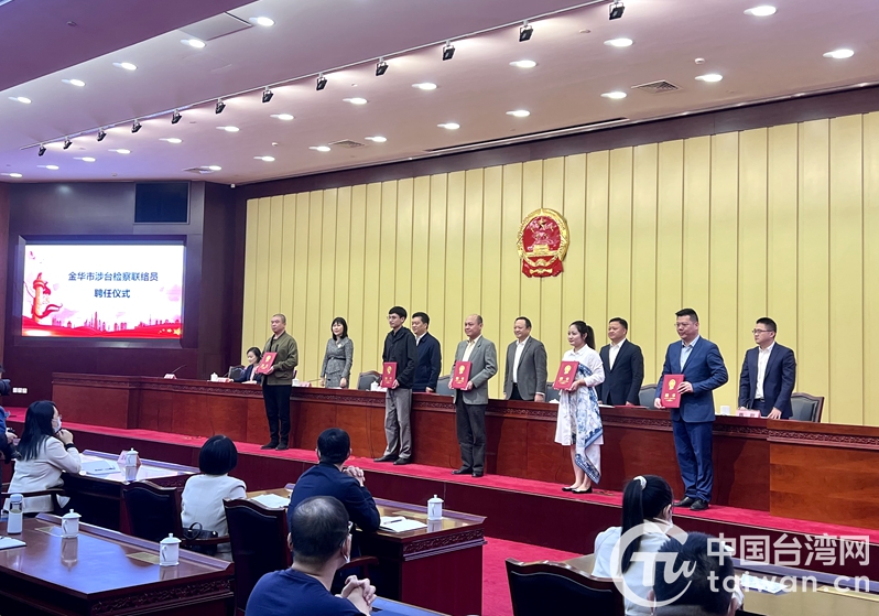 中國臺灣網11月10日訊 11月9日,金華市舉辦涉臺檢察聯絡站揭牌暨涉臺檢察聯絡員聘任儀式,10位在金臺胞受聘成為該市首批涉臺檢察聯絡員。