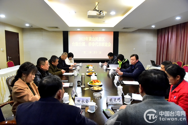 中國臺灣網2月14日訊 近日,黃山海峽兩岸交流基地舉辦2023年臺胞臺屬、僑眷代表聯誼會,邀請黃山風景區臺胞臺屬、僑眷代表10余人共敘鄉情,共話發展,共謀未來。