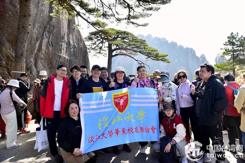 皖臺青年迎客松前合影留念(圖片來源:黃山兩岸交流基地)