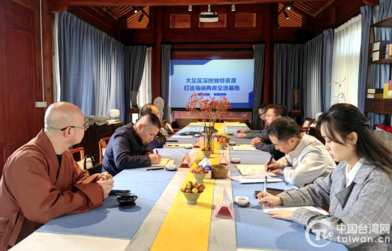 王建國指出,大足石刻在海峽兩岸交流中發(fā)揮了重要作用,特別是疫情期間交流從未中斷,大足持續(xù)優(yōu)化完善臺(tái)企臺(tái)商服務(wù)舉措,親商、穩(wěn)商、安商成效顯著,不斷深化兩岸文化、基層、經(jīng)貿(mào)交流合作,切實(shí)發(fā)揮了示范引領(lǐng)作用。他認(rèn)為,大足石刻歷史悠久、影響廣泛,在海峽兩岸、渝臺(tái)兩地之間作用獨(dú)特,具有深厚的藝術(shù)價(jià)值、文化價(jià)值和研究價(jià)值,是中華優(yōu)秀傳統(tǒng)文化之集合,更是兩岸交流交往的重要紐帶。要持續(xù)深度挖掘大足石刻文化中蘊(yùn)含的精神內(nèi)涵和時(shí)代價(jià)值,精心策劃開展兩岸交流活動(dòng),持續(xù)鞏固、拓展兩岸文化交流平臺(tái),促進(jìn)兩岸同胞心靈契合。要落實(shí)落細(xì)系列惠臺(tái)政策措施,幫助臺(tái)企臺(tái)商解決困難問題,依法保障其合法權(quán)益。