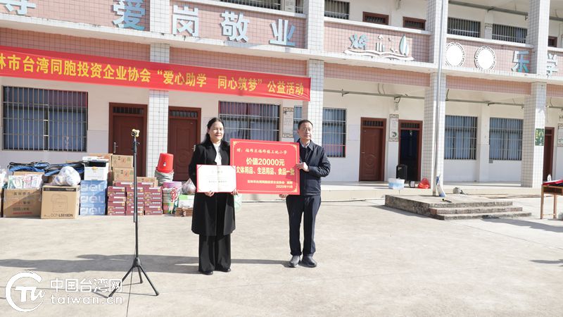 玉林市臺協(xié)向上地小學捐贈教學物資等。(中國臺灣網(wǎng)發(fā))