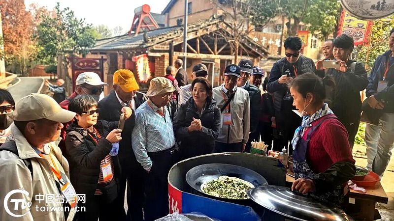 臺灣苗栗縣黃姓宗親會一行在江夏區小朱灣品嘗特色美食。(中國臺灣網發)