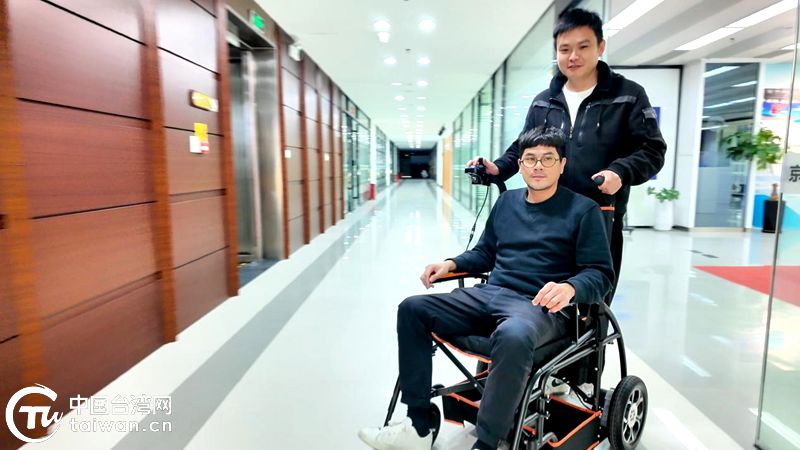 基地工作人員現場演示伴悅行電動雙人輪椅。(中國臺灣網發)