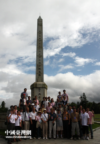 參加“情系八桂-兩岸文化聯誼行”活動的嘉賓今天來到昆侖關戰役舊址悼念先烈。圖為兩岸嘉賓在戰役陣亡戰士紀念塔前合影留念。(中國臺灣網 張弛 攝)
