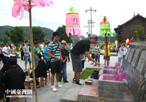 臺灣大學生在給水族祖先敬香。(黔南州臺辦 桂勇 攝)