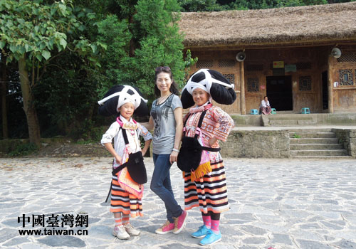梭戛長角苗女孩在寨門口歡迎調研組一行。(圖片來源:六盤水市臺辦)
