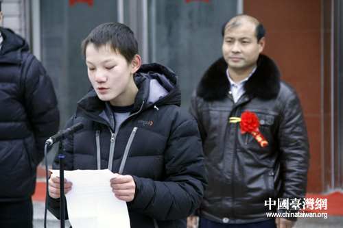 由頂新公益基金會參與援建的河北平山縣西柏坡中學綜合樓竣工啟用,圖為啟用儀式上學生代表發言(中國臺灣網記者 蕪同 攝)