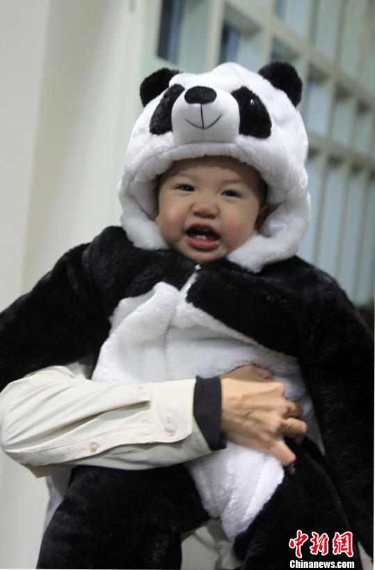 圖為現場一位1歲多的嬰兒扮成“圓仔”模樣,十分可愛。 董會峰 攝