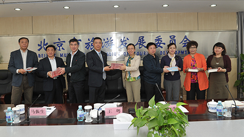 2014年4月1日,來自北京市接待臺灣游客的旅行社負(fù)責(zé)人、導(dǎo)游聚集一堂,參加《寶島游客逛北京》發(fā)書儀式。北京市旅游發(fā)展委員會副主任王粵、北京市人民政府臺灣事務(wù)辦公室副巡視員馬振生、北京市人民政府新聞辦公室副主任白杰出席。市旅游委、市臺辦有關(guān)部門領(lǐng)導(dǎo)、工作人員,國旅總社、中國旅行社總社(北京)有限公司、中青旅、春秋旅行社、康輝旅行社、凱撒國旅、新華國際旅行社、眾信旅行社、海峽旅行社、北京中國國際旅行社、中信旅游、神舟國際旅行社、環(huán)境國際旅行社等旅行社負(fù)責(zé)人、導(dǎo)游約40人參加了發(fā)書儀式。