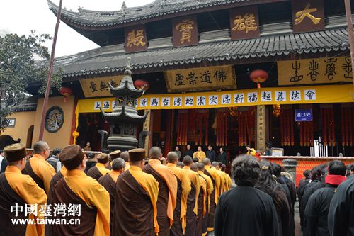中國(guó)臺(tái)灣網(wǎng)2月14日上海訊 丙申猴年初七(2月14日)上午11時(shí),上海玉佛禪寺在大雄寶殿隆重舉行為臺(tái)灣地震災(zāi)區(qū)捐贈(zèng)儀式及祈福超薦法會(huì)。