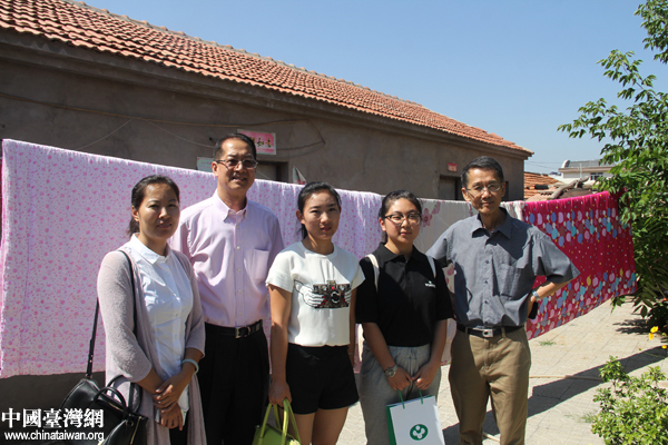 滕鴻年(左一)、吳國禎(右二)與克旗團委書記郭玉玲(左二)到張穎家中走訪。(中國臺灣網 王思羽 攝)