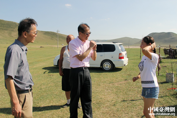 滕鴻年、吳國禎在草原與達日丹話別。(中國臺灣網 王思羽 攝)