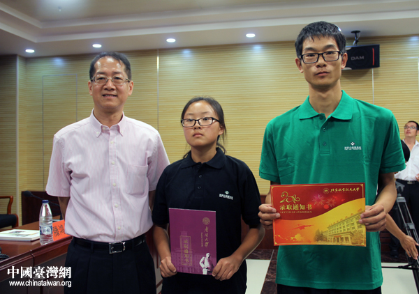 克旗及基金會領導向獲得獎學金同學頒發證書和獎學金。(中國臺灣網 王思羽 攝)