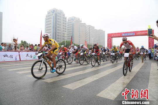 為期四天的第二屆海峽兩岸山地自行車聯(lián)誼賽暨第二屆環(huán)鄱陽湖國際騎游大會(huì)3日在江西省當(dāng)年“南昌會(huì)戰(zhàn)”主要發(fā)生地南昌縣武陽鎮(zhèn)開幕,圖為參賽選手上演“瘋狂的賽車”!√K路程 攝