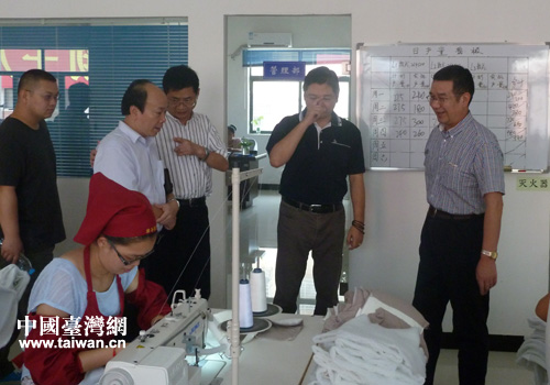 中國(guó)臺(tái)灣網(wǎng)8月7日襄陽消息 日前,湖北省臺(tái)辦副主任涂陽斌一行到襄陽走訪調(diào)研,對(duì)襄陽市開展“千名干部進(jìn)臺(tái)企、傾情服務(wù)促發(fā)展”活動(dòng)和2012年涉臺(tái)園區(qū)獎(jiǎng)勵(lì)扶持資金使用情況進(jìn)行督辦檢查,并就省臺(tái)辦開展群眾路線教育實(shí)踐活動(dòng)征求意見。調(diào)研組先后深入到湖北襄誠(chéng)鞋業(yè)有限公司、湖北雅姿服飾有限公司等臺(tái)資企業(yè)車間和臺(tái)商工業(yè)園,了解企業(yè)生產(chǎn)經(jīng)營(yíng)情況。