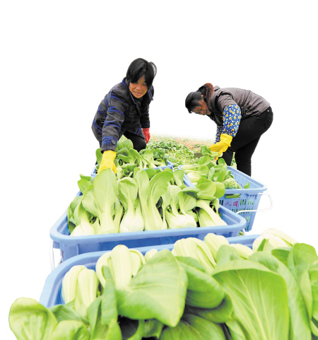 種植戶(hù)正在采摘有機(jī)小白菜。