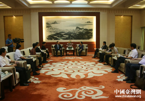 中國臺灣網9月24日鎮江消息 日前,臺灣新北市議長陳幸進、臺灣寶石建設公司總經理陳汪全一行來鎮江考察,鎮江市市長朱曉明會見了陳幸進一行。