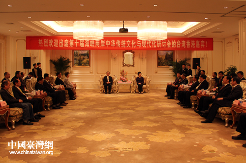 31日晚,全國人大常委會副委員長、民進中央主席嚴雋琪,在江蘇如皋會見了臺灣“海峽兩岸民意代表交流基金會”董事長饒穎奇等15位出席第十屆海峽兩岸中華傳統文化與現代化研討會的臺灣和香港嘉賓。(中國臺灣網 楊麗 攝)