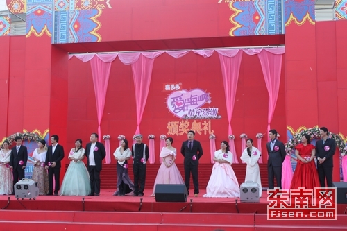 歷時3個多月拍攝、角逐的“愛在海峽 情牽澎湖”海峽兩岸新人愛情故事TV秀大賽今日在福州圓滿收官。來自海峽兩岸10對新人齊聚舞臺,接受來自海峽兩岸觀眾的祝福。