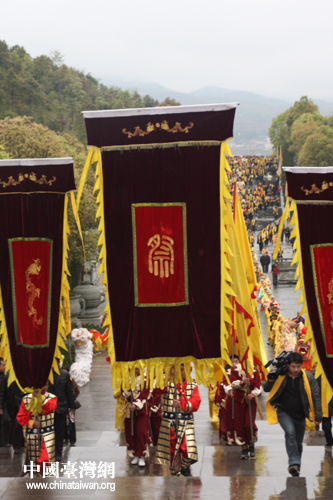 辛卯年清明海峽兩岸祭祀炎帝神農(nóng)氏大典4月3日在湖南炎陵縣炎帝陵舉行。190余名參加第二屆在臺(tái)湘籍后裔湖南行的在臺(tái)湘籍人士參加了祭祀典禮。(中國臺(tái)灣網(wǎng) 楊麗 攝)